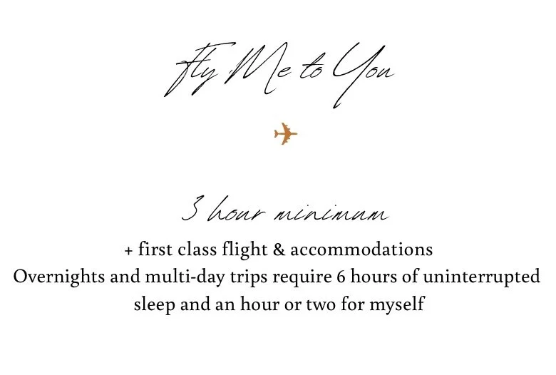 Dates three or more hours require time away from the suite. Serious privacy concerns where we can’t head out together? Add 300.